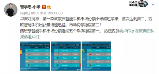 争气!小米成功干翻苹果,一举拿下欧洲市场
