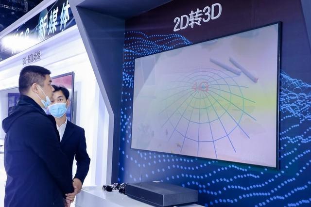 在本次新媒体大会展示活动中记者看到5G 智慧场馆互动体验、5G 全息采访、2D转3D家庭巨幕影院等多项5G 新媒体类创新实践。