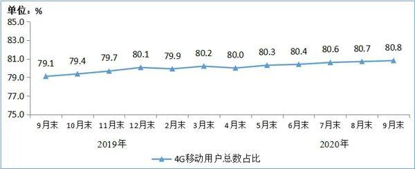 ▲ 2019-2020年9月末4G用户总数占比情况