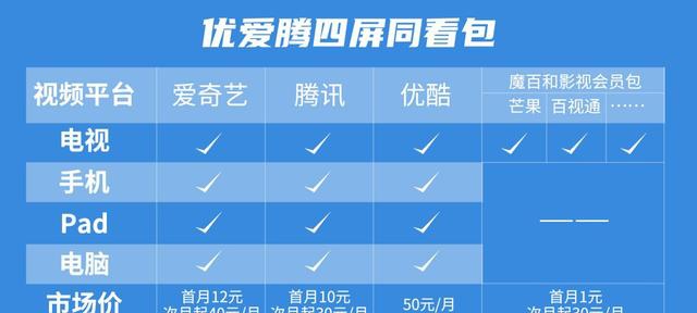 好在,现在开通北京移动互联网电视爱家影视会员(以下简称"优爱腾四屏同看包"),爱奇艺、腾讯、优酷四屏(电视、手机、pad、电脑)会员全到手,另外还能享芒果、百视通、未来电视等大屏权益,连续包月仅需49元/月,简直不要太划算!