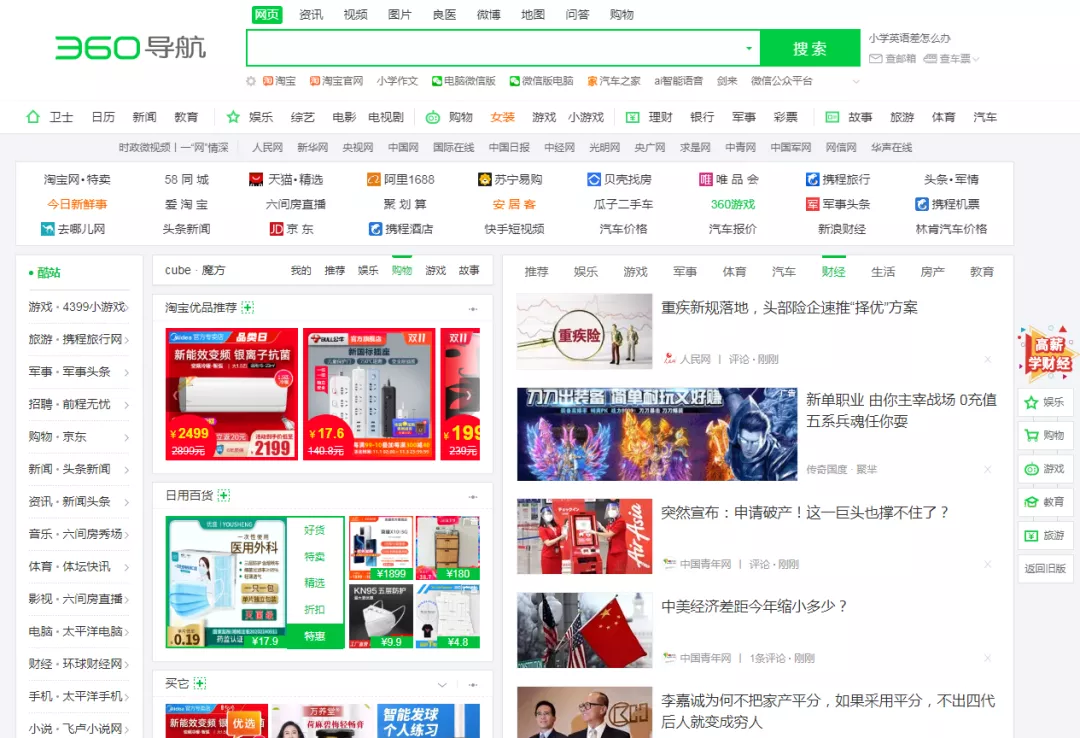 又例如,360导航深耕于PC平台,现阶段360导航也不再只是一个单一的网址页面,它已经成为了一个涵盖娱乐、购物、游戏、教育、旅游为一体的巨大的流量入口,今年年中还上线了可定制化的魔方Cube产品,为各类平台注入新的流量,其平台价值不言而喻。