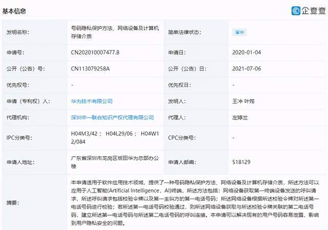 华为公开手机号码隐私保护专利,防止用户号码泄露!!!
