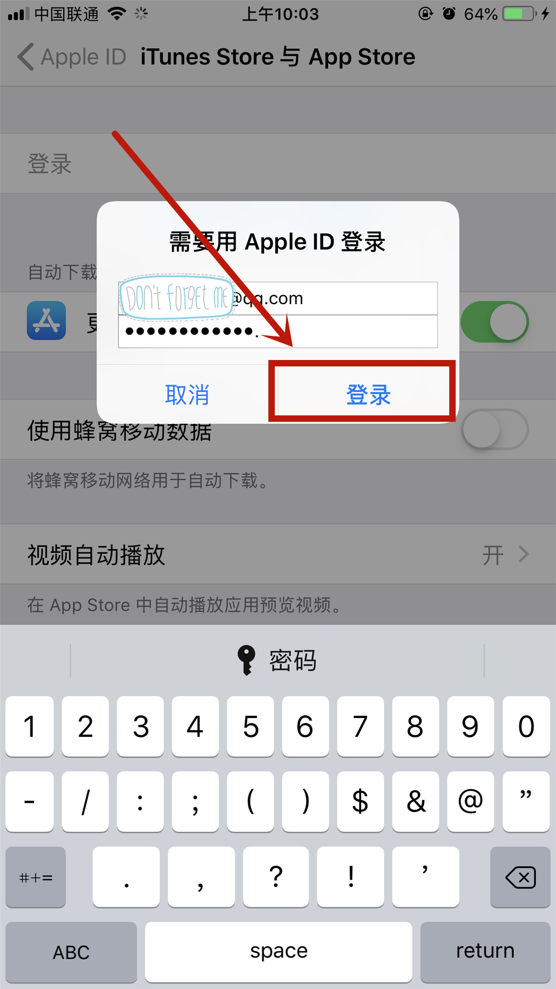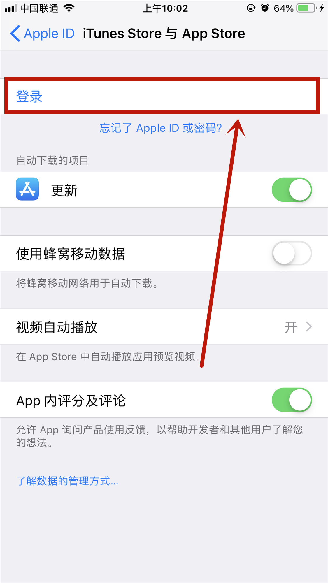 5、退出Apple ID后,点击【登录】功能进行下一步。