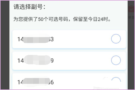 6、此时可以看到有50个号码可选,每天24点更新,选择喜欢的号码开通即可。