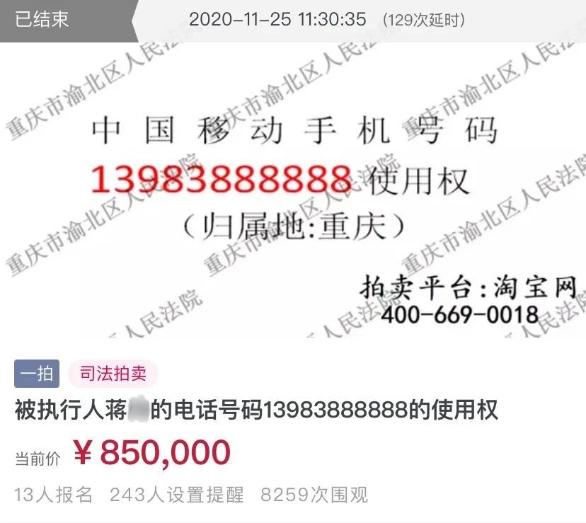 此次手机号码拍卖为重庆尊星投资有限公司等与蒋某、重庆奥源建设发展有限公司等借款合同纠纷,因蒋某、重庆奥源建设发展有限公司无力偿债,而被申请法院强制执行。