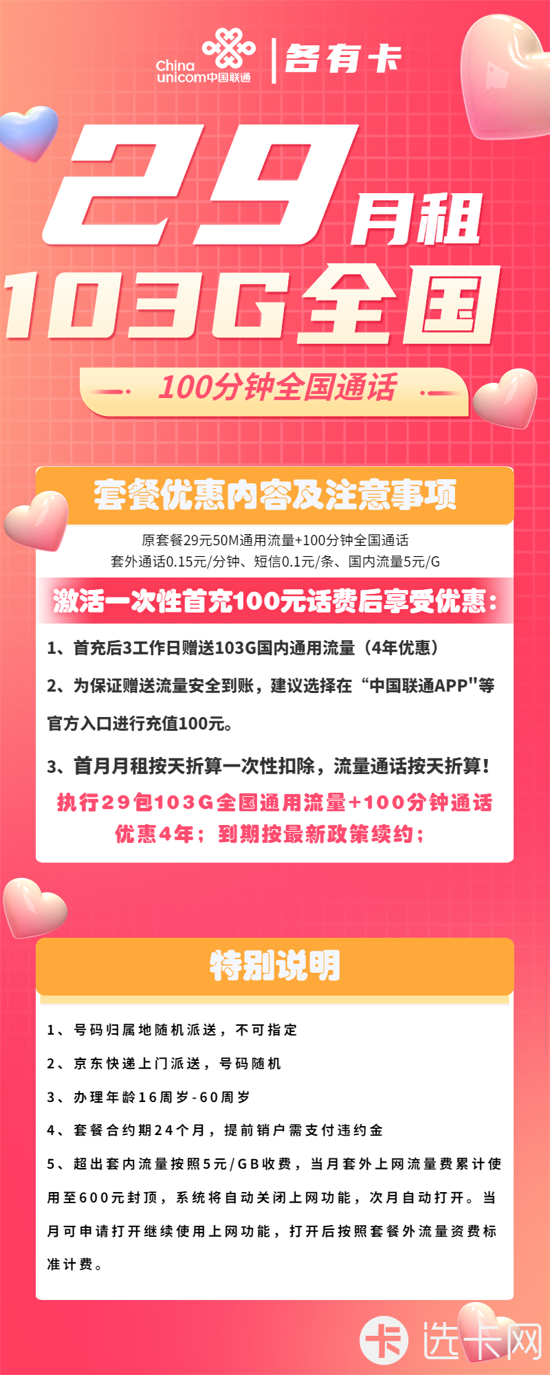 联通各有卡29元月包103G通用流量+100分钟通话2023-05-15关键词: 联通各有卡 阅读(184)