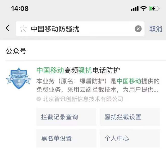 如果你是移动用户,我们首先需要关注一个公众号,叫做:中国移动高频骚扰电话防护,如图: