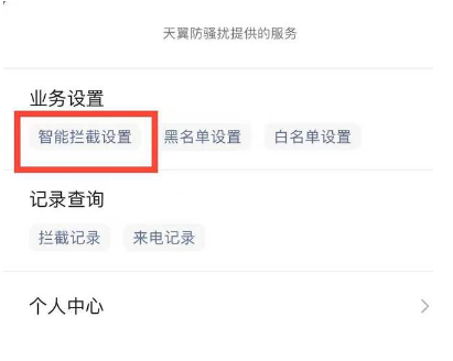 进入到智能拦截设置菜单,进行相应设置之后即可拦截: