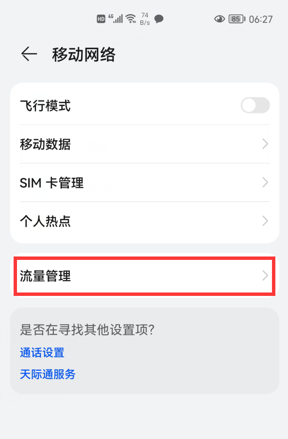 再点击“流量管理”选项,进入到手机流量管理界面。