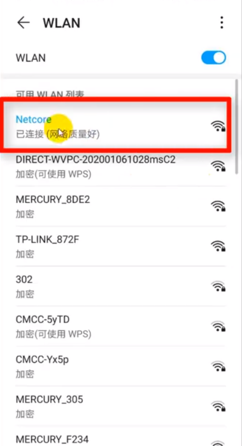 因为开启了第二个功能——智能WIFI,我们在进入到自家WIFI时,基本上都不再输入WIFI密码。时间久了,我们可能会忘记自己家里的WIFI密码。有朋友到我们家里来玩,想用我们家里的WIFI,可是我们把密码忘记了,是不是很尴尬?这个时候,该怎么办?还好,华为手机内置了一种功能,可以快速查看WIFI密码。方法很简单,打开手机的设置,点击“WLAN”,这时,会显示所有的WIFI列表,如下图。