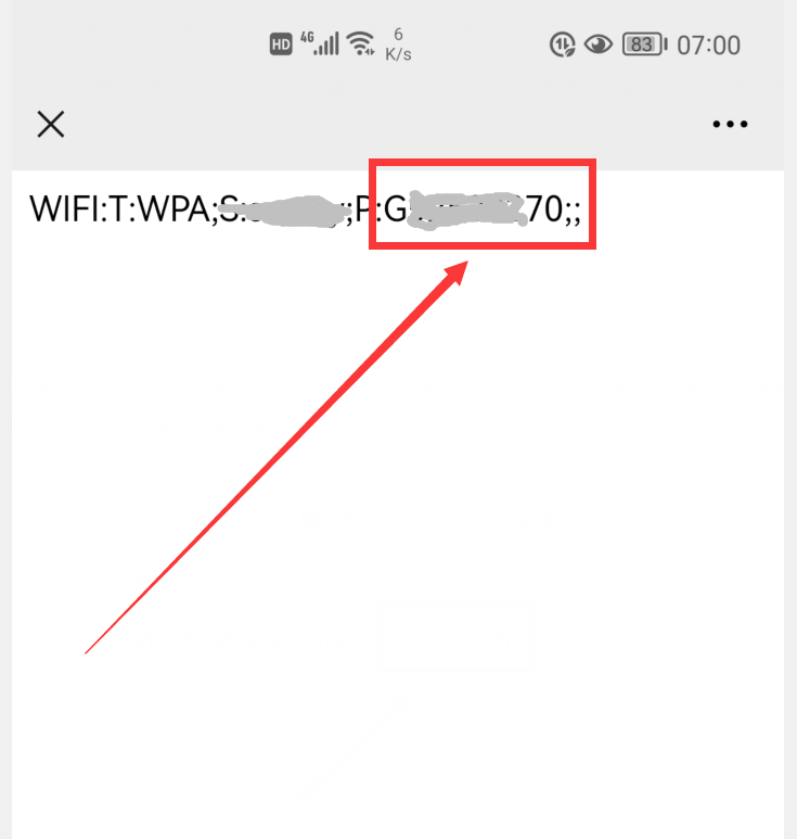 在弹出的窗口中,我们可以看到一个二维码,我们用朋友的手机扫描一下这个二维码,朋友手机上就会显示这个WIFI的账号和密码。