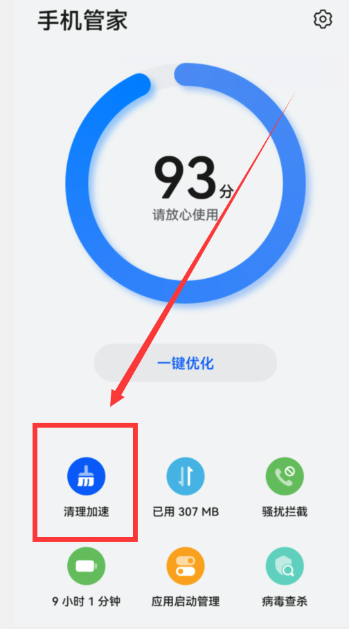 一、通过手机管家来清理垃圾。