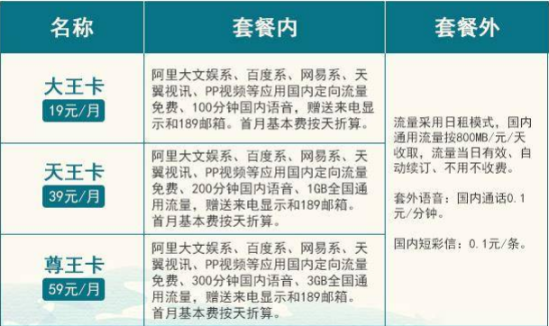 “电信大王卡”19元套餐版:电信大王卡19元套餐介绍2022-04-05 阅读(1009)关键词: 电信大王卡 电信大王卡19元套餐