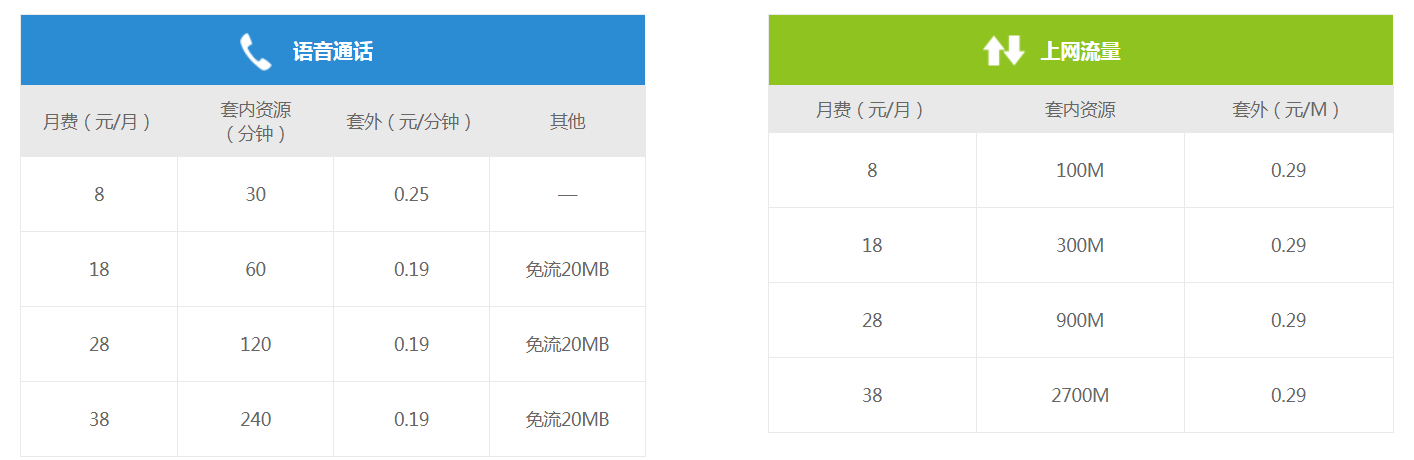 移动自选套餐资费