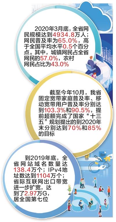 网民增加的背后,是我省互联网普及程度的提高。截至今年10月,我省固定宽带家庭普及率、移动宽带用户普及率分别达到103.3%和90.5%,提前超额完成国家“十三五”规划提出的到2020年末分别达到70%和85%的目标。