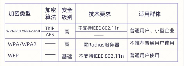 路由器主要提供了三种加密安全类型,不同类型,加密安全性不同。