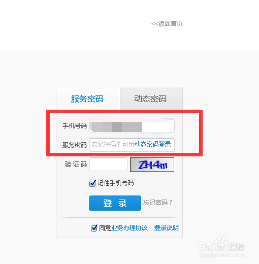 最后,我们可以返回到登陆的页面,重新输入手机号和新的服务密码看是否能成功登陆。