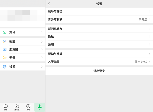 2.使用账号密码登录后进入到微信主界面,然后我们点击底部工具栏的“我”按钮,切换至个人中心界面。