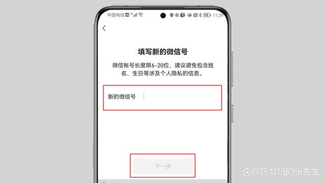 6、输入新的且易记的微信号码,并点击“下一步”。