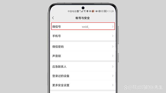 3、在“账号与安全”页面点击“微信号”。