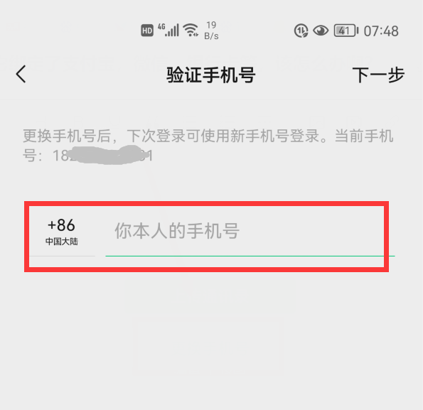 在输入框中填写上你的新手机号,然后按提示操作就可以了。操作期间,也需要验证码来进行验证,跟支付宝是一样的。