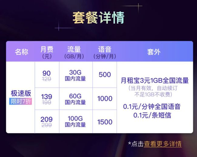 除了上面提到的速度差异外,各家套餐的差别又回到了最传统的流量和通话时间上的不同。