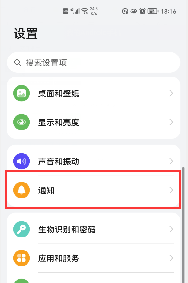 向下滑动,找到“通知”选项,点击它,就会进入手机的“通知”设置界面(如下图)。