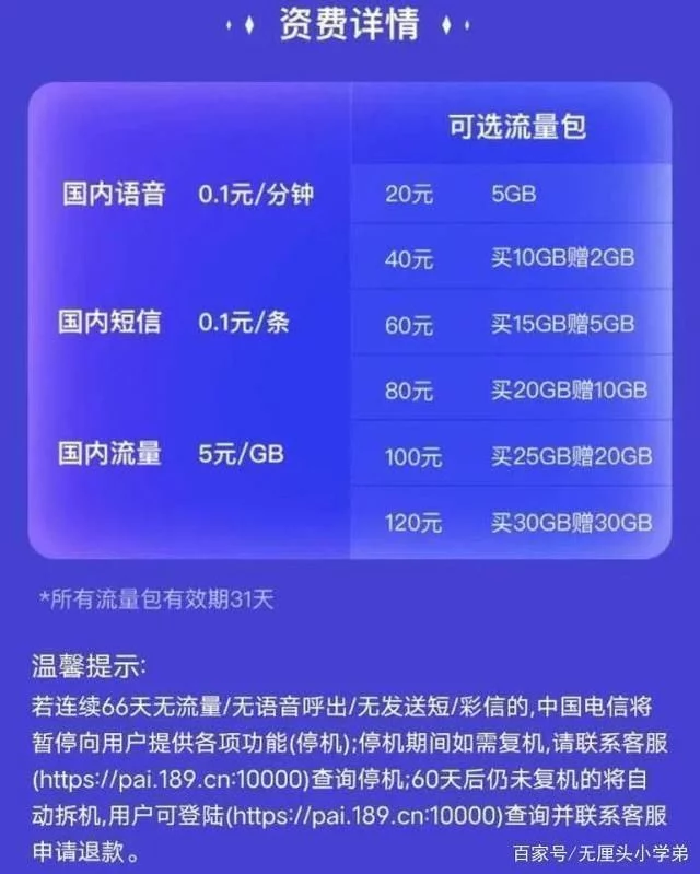 换言之,如果你有佛号的需求,那么你养这张卡,将不用再去考虑月租、选套餐的问题。当然,根据中国电信发布的细则来看,如果该卡连续66天无语音呼出、无法送短信彩信,用户将被强制停机。如果需要恢复,可以联系客服。最后,根据用户出生年月,以及切实需求,该产品分为20元、60元、120元三档,详细信息大家可以到中国电信相关产品详情页面了解。