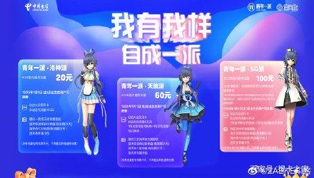 电信官方也主推三款流量包分别是:洛神派、天依派、5G派