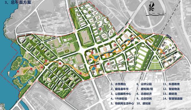 中部产业功能服务区:位于腾龙大道南侧,解放大道延长线东侧,用地面积约0.25平方公里。主要集中研发办公、创客及企业孵化机构、物联网会议会展、体验中心、科普教育、高端研发及教育机构、智慧城市运营中心的商业金融等功能,是物联网的运营中枢地带。