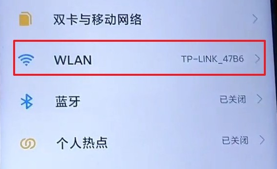 第一步:打开手机设置,点击【WLAN】,确保下连上的是自己家的无线网。接着,点击无线网进入到设置中。