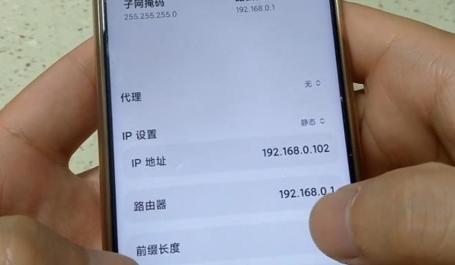 第二步:下拉页面,找到【IP设置】,点击【IP地址】选择为【静态】,接着复制路由器一栏的数字。