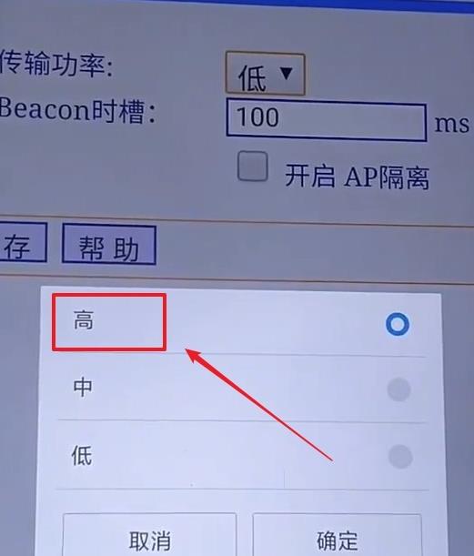 第六步:将【传输功率】设置为【高】,最后点击【保存】即可。