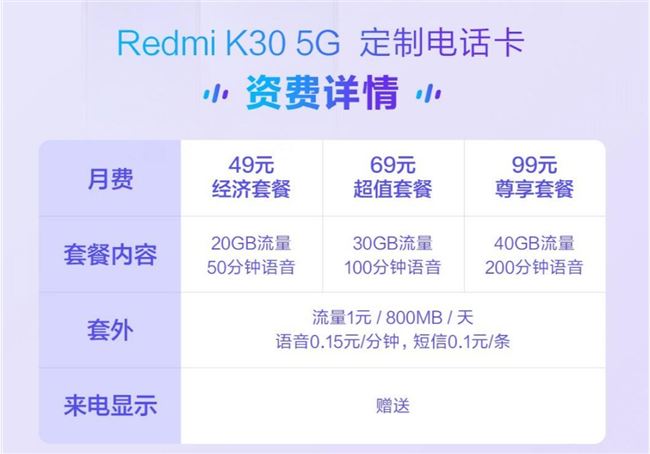 另外,凡在小米商城购买 Redmi K30 5G 的用户,均赠送定制电话卡一张,先到先得。