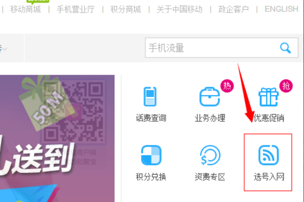 3、在首页右侧菜单栏点击进入“选号入网”。