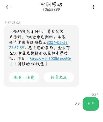 会收到移动发来的话费兑换短信,用户根据短信提示进行回复即可兑换话费金额。