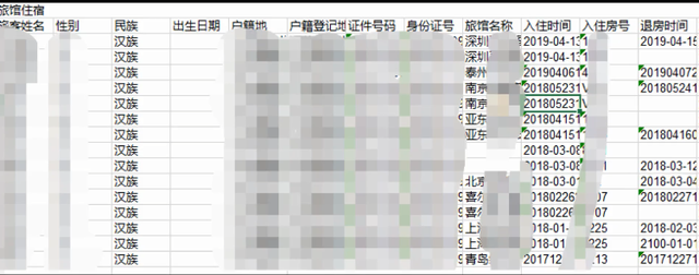 再支付了1500元,则很快查到了自己乘坐飞机、火车,以及入驻酒店、房间号的记录信息,包括出入境信息。