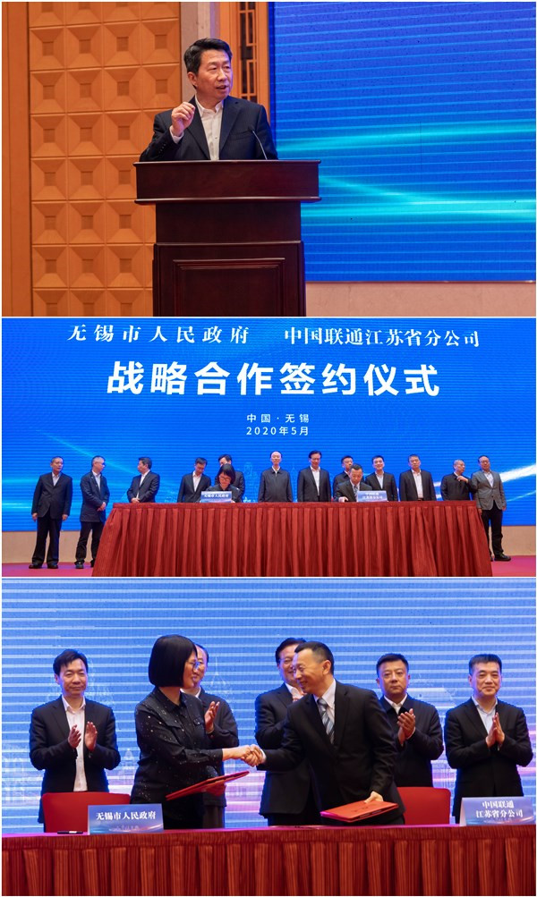 2020年5月12日,江苏联通与无锡市人民政府签署《共同推进5G+新基建及数字经济产业发展》战略合作协议。江苏联通副总经理陆翔、无锡市副市长高亚光代表双方签约,江苏省副省长马秋林、副秘书长张乐夫、无锡市委书记黄钦、无锡市市长杜小刚、常务副市长朱爱勋、江苏联通总经理方一明到场鉴签。