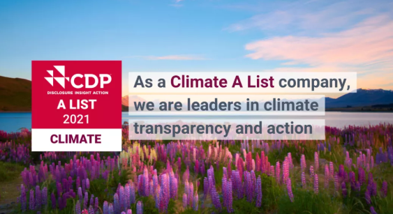 CDP被投资者评选为全球第一的气候研究机构,拥有全球最丰富、最全面、最高信任度的企业和政府环境信息平台,其年度环境披露和评分程序被广泛认可为评价企业环境管理的黄金标准。基于企业披露环境信息透明度和环境管理表现,CDP通过科学的评估机制对其进行从D-到 A(由低到高)的评估。获得A评级的企业必须对气候议题具有完善的治理和监督体系,以及严格的风险管理流程。