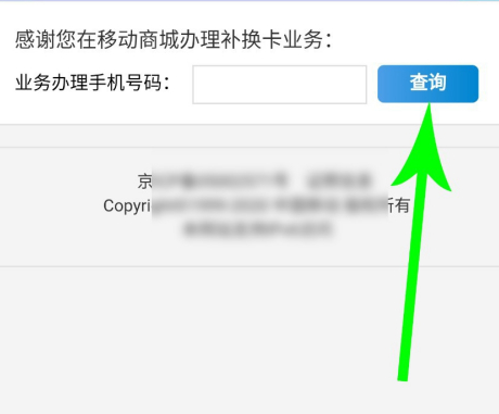 打开中国移动我的界面点击“补换卡业务”,然后输入手机号点击“查询”。