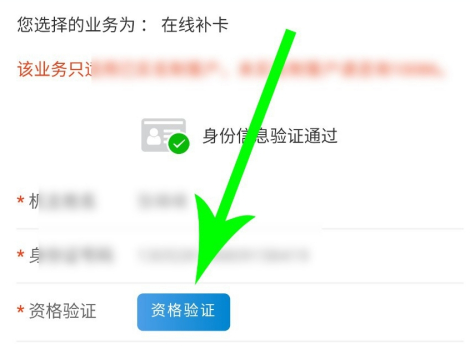 打开办理业务界面点击“资格验证”,然后点击“提交”,接着根据提示操作即可。