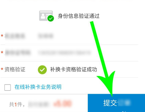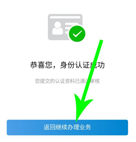 打开补换卡界面点击“开始身份验证”,然后依次验证身份和人脸,认证通过后点击“返回继续办理业务”。