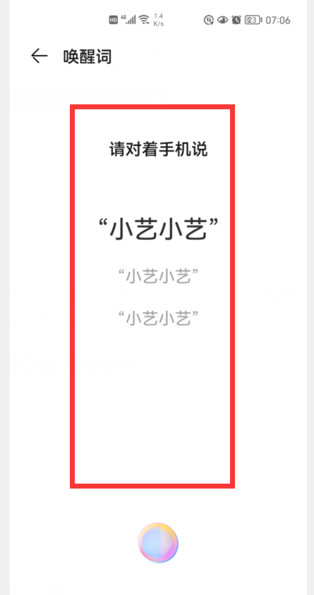 如果你的手机是华为手机,唤醒词就是“小艺小艺”;如果你的手机是荣耀手机,唤醒词就是“你好,YOYO”。进入到唤醒词界面,我们需要3次读出唤醒词来验证自己的声音。然后,就可以使用“语音唤醒”功能了。