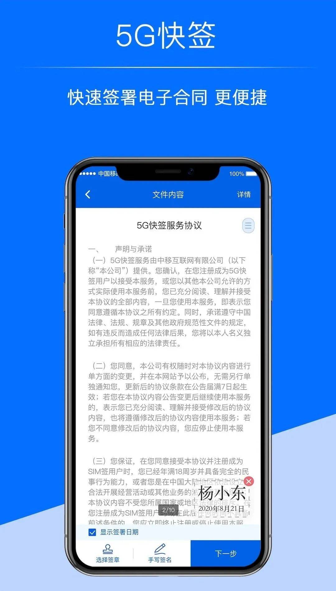 在移动办公领域,超级号还支持5G快签功能。通过具有法律效力的手机电子签章,从发起签署、签署文件到文件综合管理都可实现全流程电子化操作。