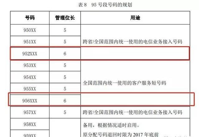 从上面这张工信部网站关于95电话的规划图中可以看出,除了952、956开头的电话是6位号码以外,其他号码段都是5位数。