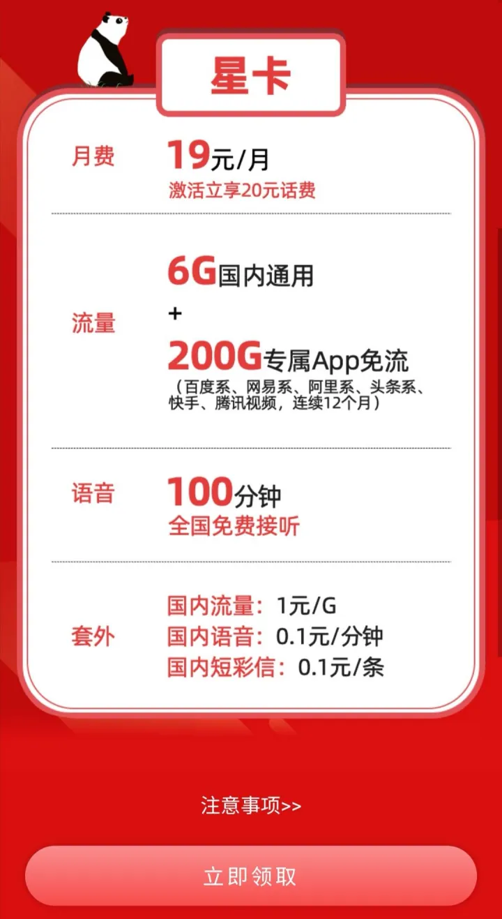 3.1、针对2020年1月17日-6月30日期间新入网的星卡套餐用户,每月可获得200G专属APP流量,订购立即生效,有效期自订购次月起连续12个月,到期自动退订,不能重复订购。