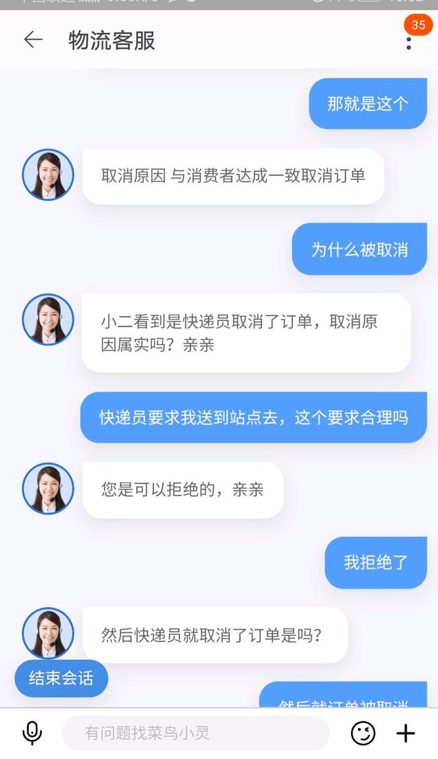 杨先生顿时哭笑不得,预约的上门取件,快递员不上门不说,还一言不合,就私自取消预约订单,这也太任性了吧,还有没有一点责任心,还有没有一点契约精神,这上门取件的服务承诺是骗人的吗?于是杨先生咨询菜鸟官方客服,讨个说法。