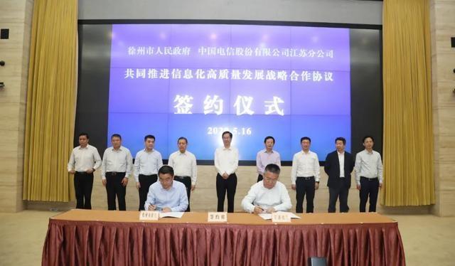 5月16日上午,中国电信江苏公司与徐州市人民政府签署战略合作协议,双方决定进一步深化和扩大合作,共同推进2020—2025年徐州信息化高质量发展。中国电信江苏公司党委书记、总经理董涛出席并鉴签,并表示将全力支持徐州5G建设,高标准助力我市智慧城市发展,打造跨行业融合的5G新生态。活动现场,中国电信江苏公司副总经理潘天舒、徐州市人民政府副市长赵兴友分别代表双方签约。据悉,未来5年,江苏电信将围绕我市关于网络强市、数据强市、智造强市、交通强市、淮海经济区中心城市战略部署,与我市在新一代信息基础设施建设、数字政府、工业互联网、新型智慧城市等领域开展深入合作。