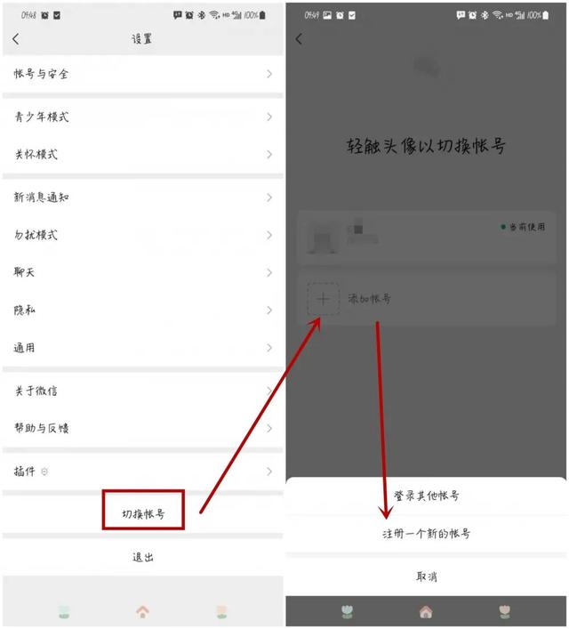 首先,在手机微信中点击【设置】,然后点击设置页面下方的【切换账号】,在切换账号页面中点击【添加账号】▼