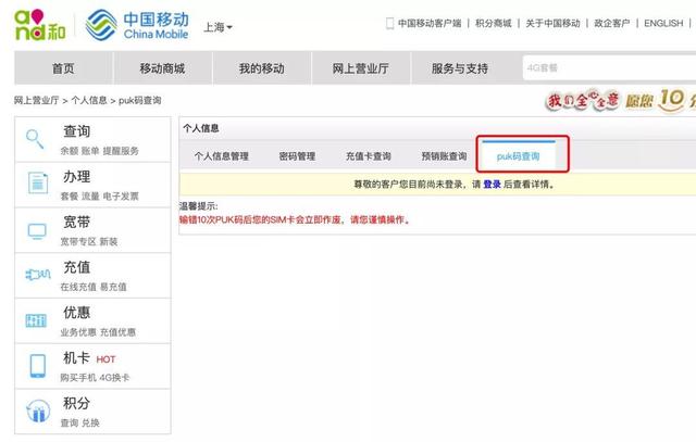 移动用户的查询方式相似,登录中国移动网上营业厅-话费服务-PUK码查询。